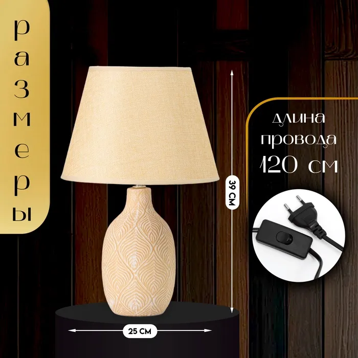Настольная лампа с абажуром RISALUX «Джесси», Е14, 40 Вт, бежево-белый, 25×25×39 см — Характеристики