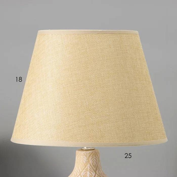 Эта настольная лампа станет стильным дополнением вашего интерьера. С высотой 39 см и размерами 25×25 см, она идеально подходит для создания уюта в любом помещении. Бежевое керамическое основание и конусный абажур цвета шампань создают гармоничное сочетание, которое легко впишется в различные стили оформления.
