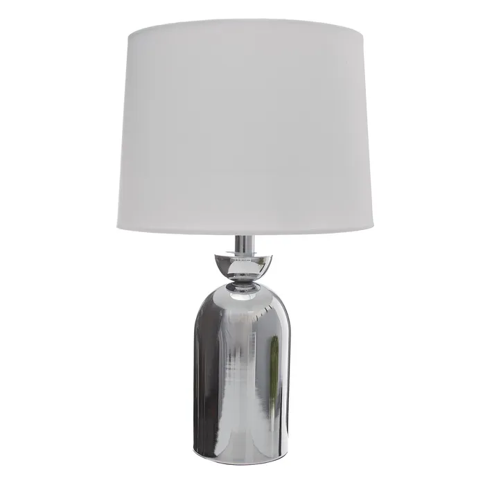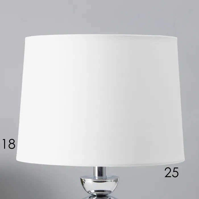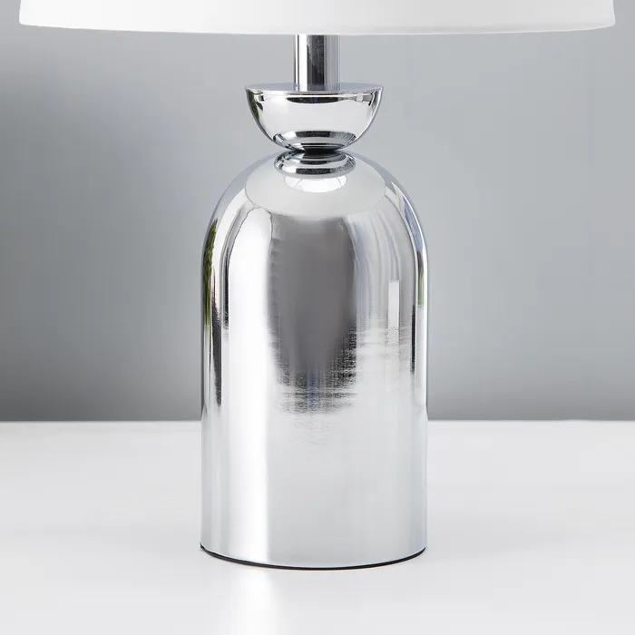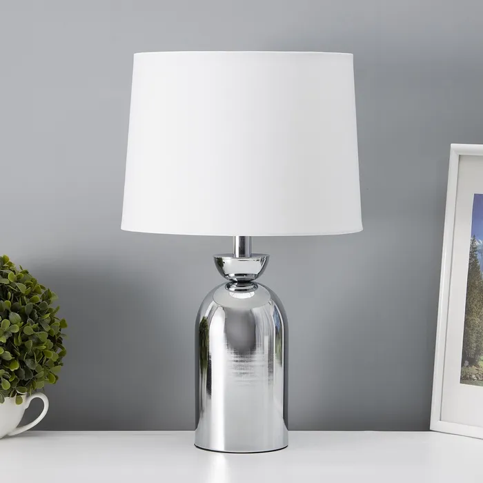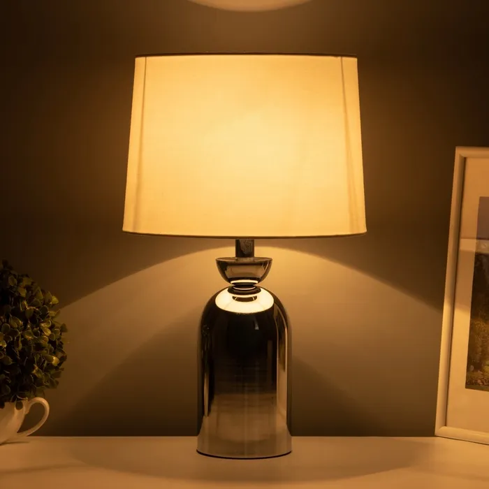 Эта настольная лампа с текстильным абажуром станет стильным акцентом в вашем интерьере. Высота 42,5 см и размеры 25×25 см идеально подходят для размещения на столе или прикроватной тумбочке. Хромированное основание придаёт ей современный вид, а светлый абажур создает мягкое и приятное освещение, идеальное для чтения или работы.