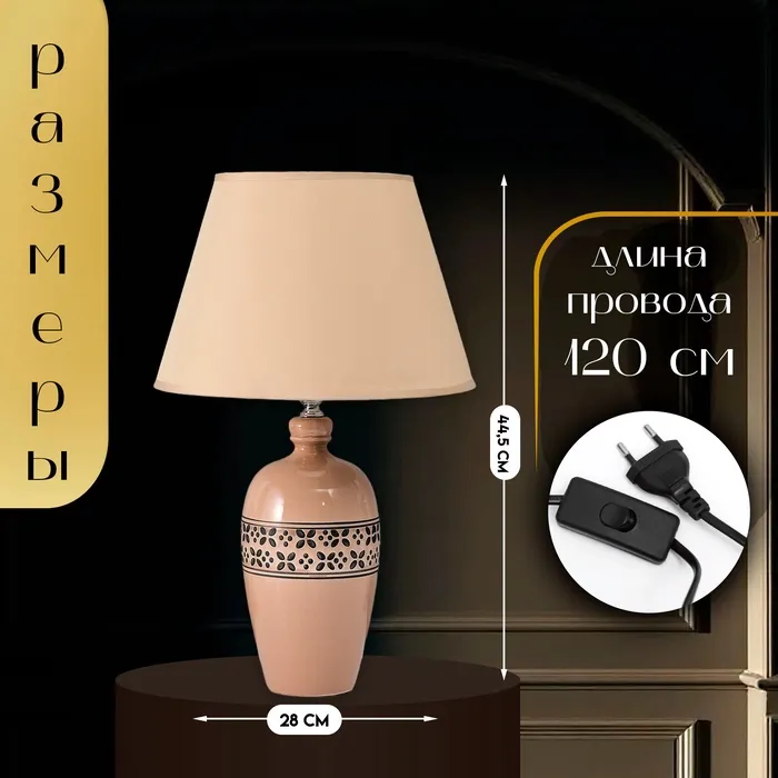 Настольная лампа с абажуром RISALUX «Эпика», Е27, 40 Вт, 28×28×44.5 см — Характеристики
