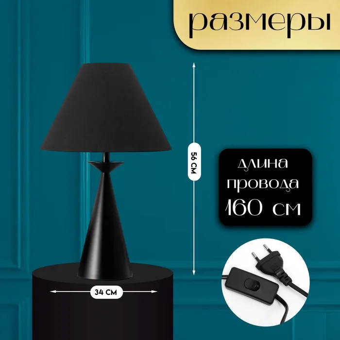 Настольная лампа с абажуром RISALUX «Эрика», Е27, 40 Вт, чёрный, 34×34×56 см — Характеристики