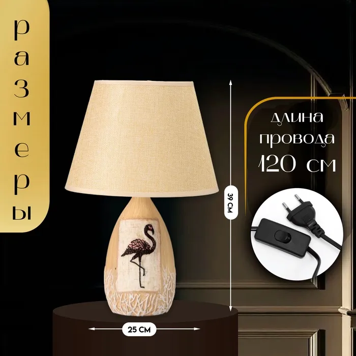 Настольная лампа с абажуром RISALUX «Фламинго», Е14, 40 Вт, бежевый, 25×25×39 см — Характеристики