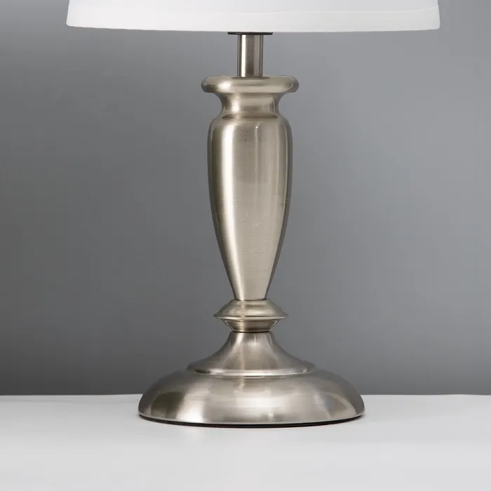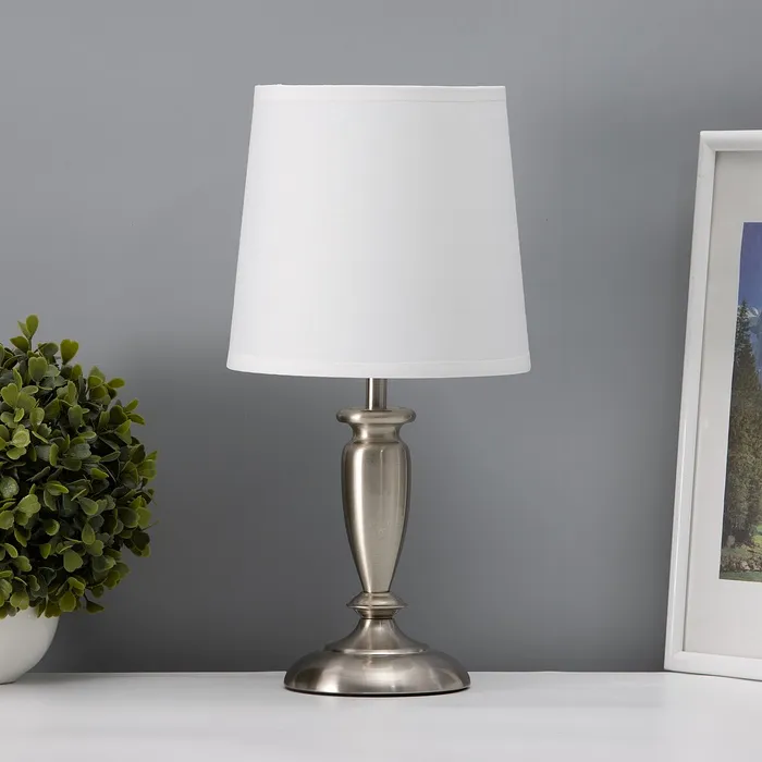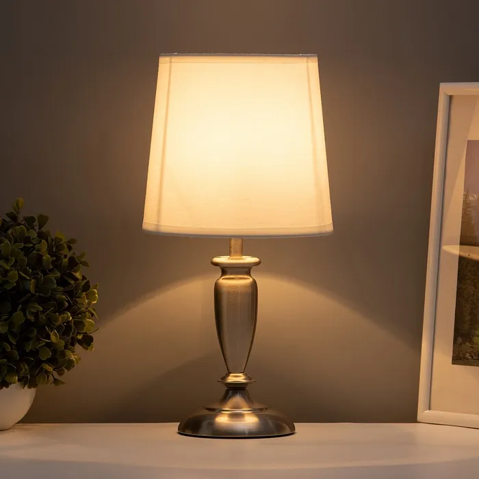 Настольная лампа с абажуром RISALUX «Флекс», Е27, 40 Вт, серебро, 17×17×35 см — Характеристики