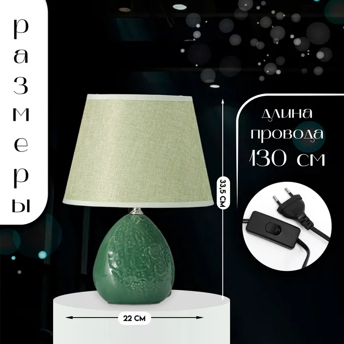 Настольная лампа с абажуром RISALUX «Инесса», Е14, 40 Вт, зелёный, 22.5×22.5×33.5 см — Характеристики