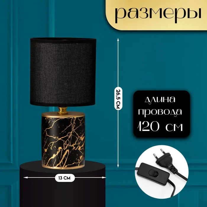 Настольная лампа с абажуром RISALUX «Юнона», Е14, 40 Вт, чёрно-золотой, 13×13×26.5 см — Характеристики