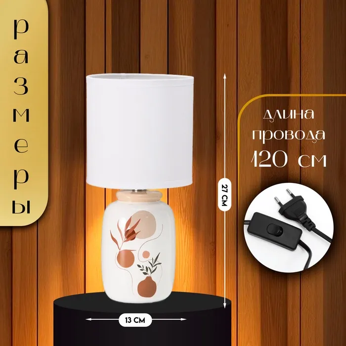 Настольная лампа с абажуром RISALUX «Ивелли», Е14, 40 Вт, белый, 13×13×27 см — Характеристики