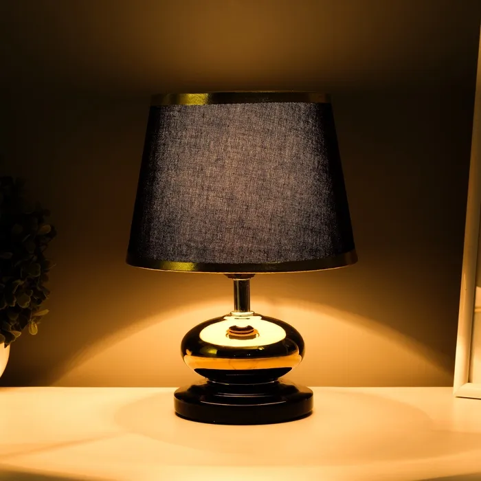 Эта настольная лампа с стильным абажуром станет изысканным акцентом в вашем интерьере. Золотое и черное керамическое основание в сочетании с темным текстильным плафоном придает ей современный и элегантный вид, идеально подходящий для спальни, гостиной или кабинета.