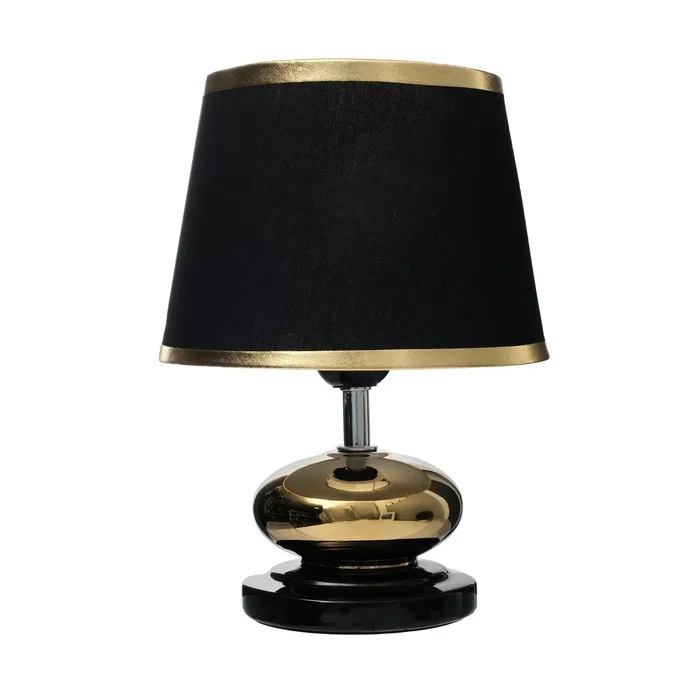 Лампа не только освещает, но и служит стильным элементом декора. Черный цвет плафона и золотистое основание делают её универсальным решением для различных стилей интерьера. Добавьте нотки элегантности и уюта в ваш дом с этой лампой, и наслаждайтесь теплым светом каждый день.