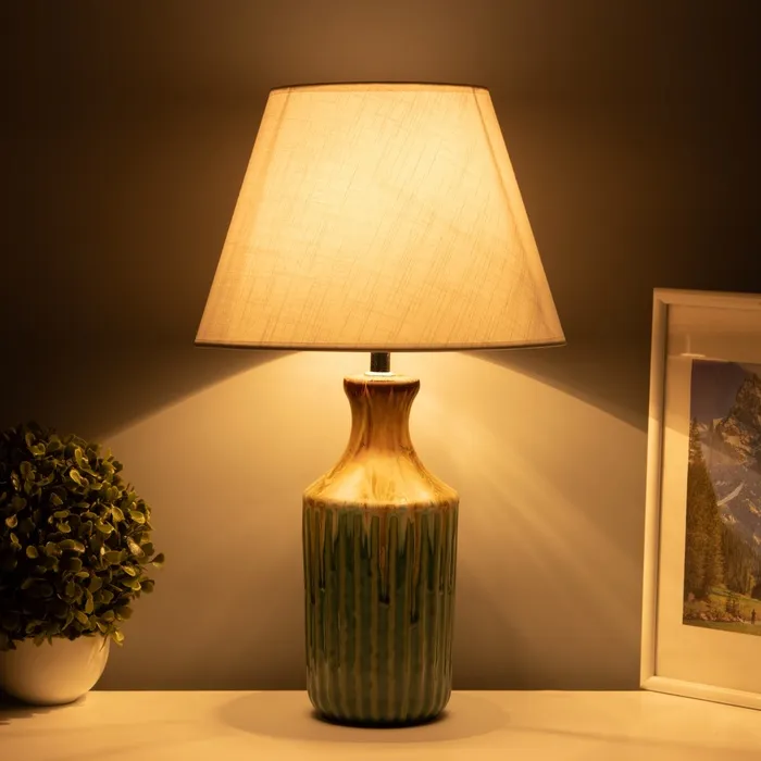 Эта настольная лампа станет ярким акцентом в вашем интерьере, придавая комнате индивидуальность и стиль. Разноцветное керамическое основание и текстильный абажур в светлых тонах создают гармоничное сочетание, которое отлично впишется как в современный, так и в классический интерьер. Она обеспечит мягкое освещение, идеально подходящее для чтения, работы или создания уютной атмосферы.