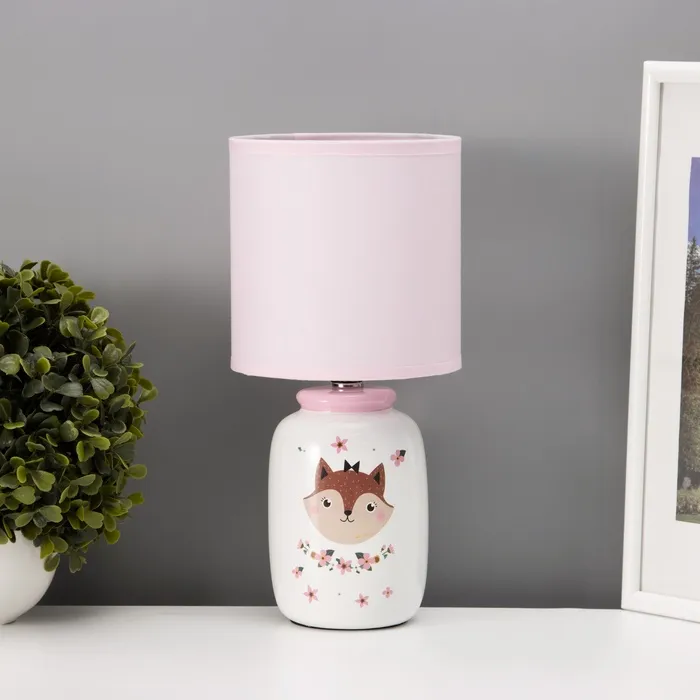 Настольная лампа с абажуром RISALUX «Киса» детская, Е14, 40 Вт, бело-розовый, 13×13×27 см — Характеристики
