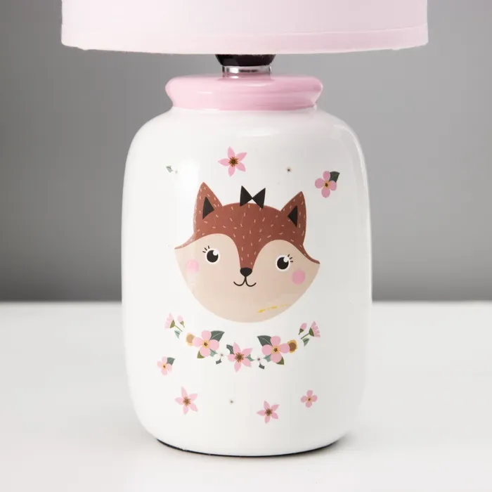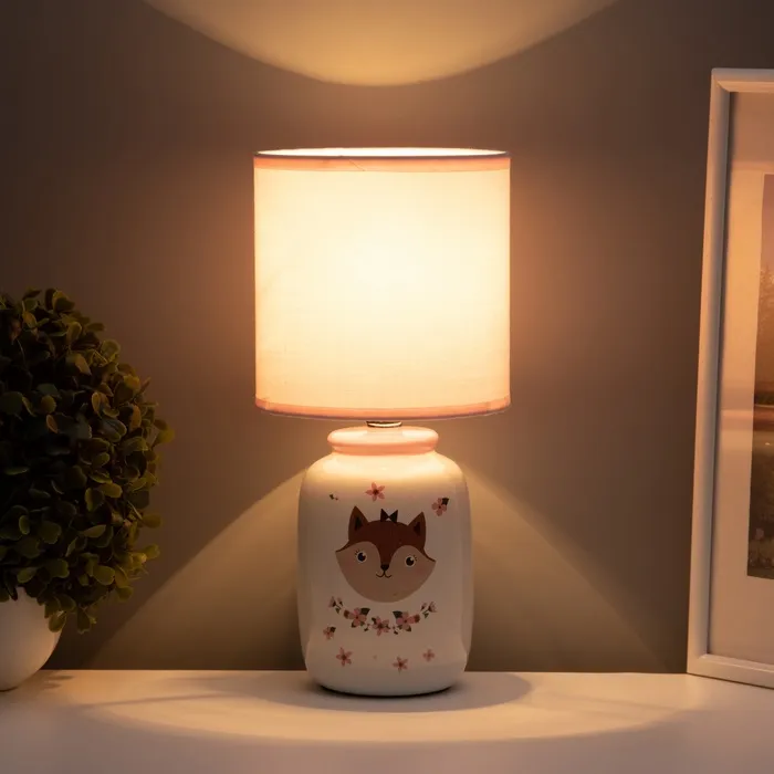 Эта очаровательная настольная лампа станет прекрасным дополнением детской комнаты, создавая уютную и яркую атмосферу. С белым керамическим основанием и розовым абажуром она идеально впишется в любой интерьер, добавляя нотку игривости и стиля.