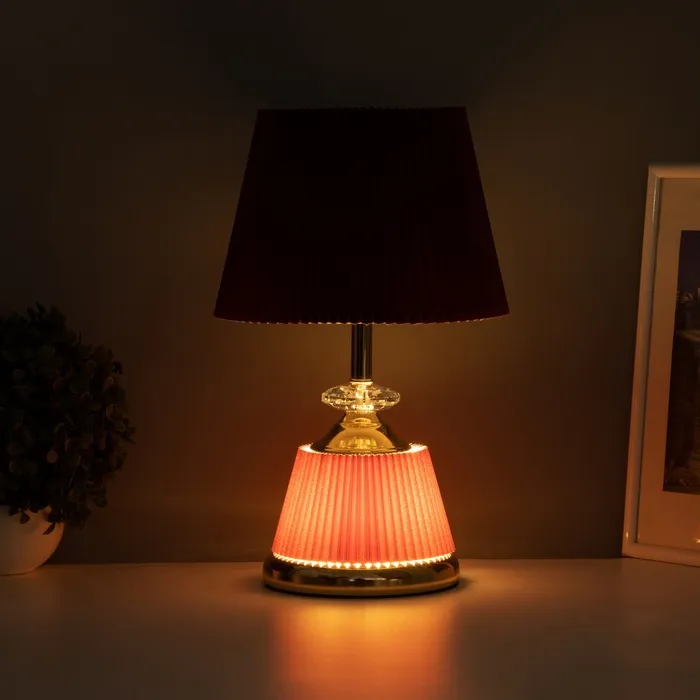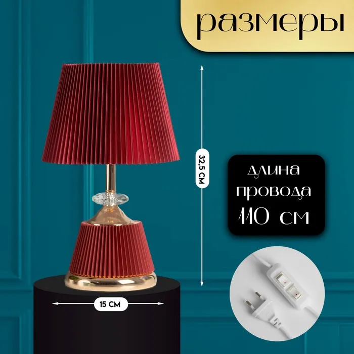 Настольная лампа с абажуром RISALUX «Клаудия», 1×40 Вт, Е27+LED подсветка основания, бордовый/золото, 15×15×32.5 см — Характеристики