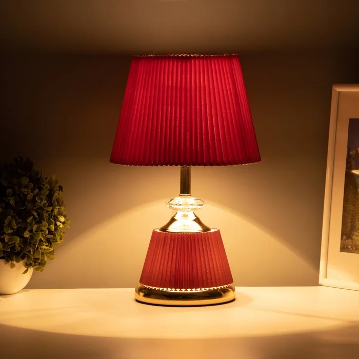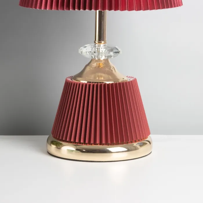 Лампа не только освещает пространство, но и служит стильным элементом декора. Её насыщенный бордовый цвет и золотистые детали добавляют изысканности, подчеркивая вашу индивидуальность. Этот светильник станет отличным дополнением для уютных вечеров и дружеских встреч.