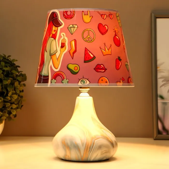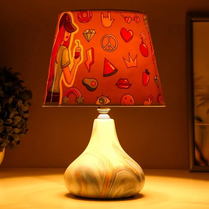 Настольная лампа с абажуром RISALUX «Коктейль», Е14, 15 Вт, 20×20×28 см — Характеристики