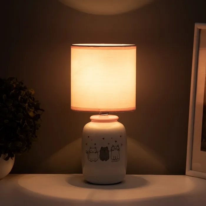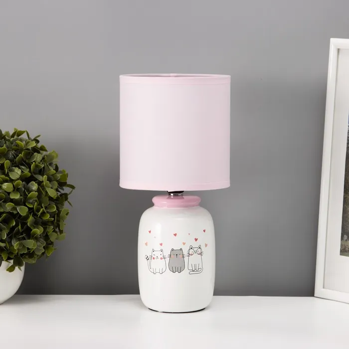 Настольная лампа с абажуром RISALUX «Кошечка» детская,, Е14, 40 Вт, бело-розовый, 13×13×27 см — Характеристики