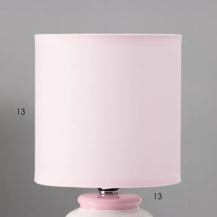 - Цилиндрический абажур из текстиля и пластика с розовым оттенком привлекает внимание и создает мягкий свет.