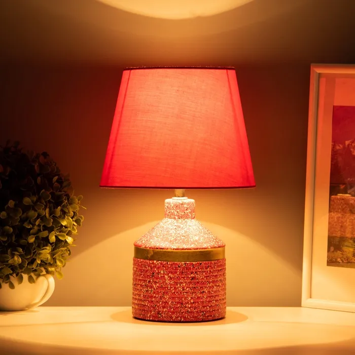 Эта настольная лампа станет ярким акцентом в вашем интерьере, добавляя нотки стиля и уюта. С её красным керамическим основанием и текстильным абажуром, она прекрасно впишется в любое пространство, создавая атмосферу тепла и комфорта.