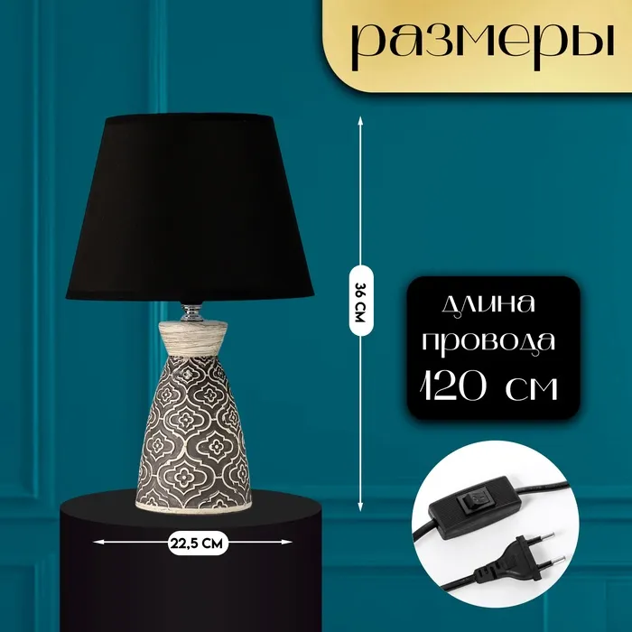 Настольная лампа с абажуром RISALUX «Лина», Е14, 40 Вт, 22.5×22.5×36 см — Характеристики