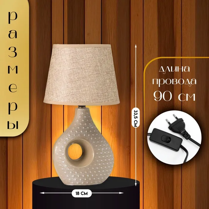 Настольная лампа с абажуром RISALUX «Маделин», Е14, 40 Вт, кофе с молоком, 18×18×33.5 см — Характеристики
