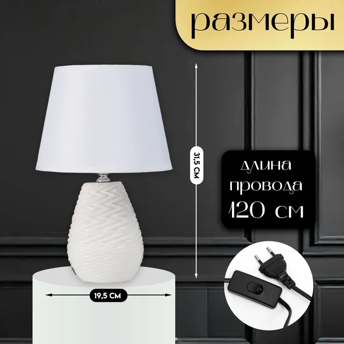Настольная лампа с абажуром RISALUX «Мелли», Е14, 40 Вт, белый, 19.5×19×,5×31.5 см — Характеристики