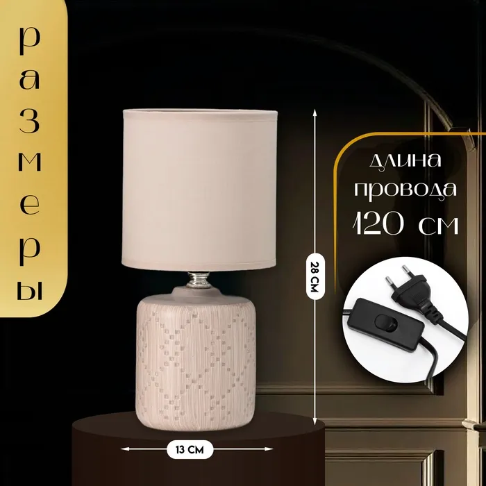Настольная лампа с абажуром RISALUX «Мерида», Е14, 40 Вт, бежевый, 13×13×28 см — Характеристики