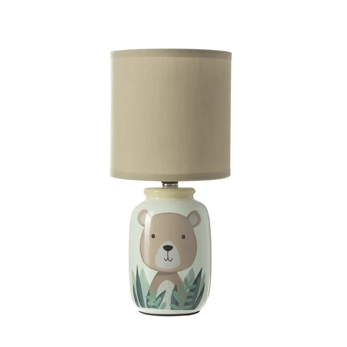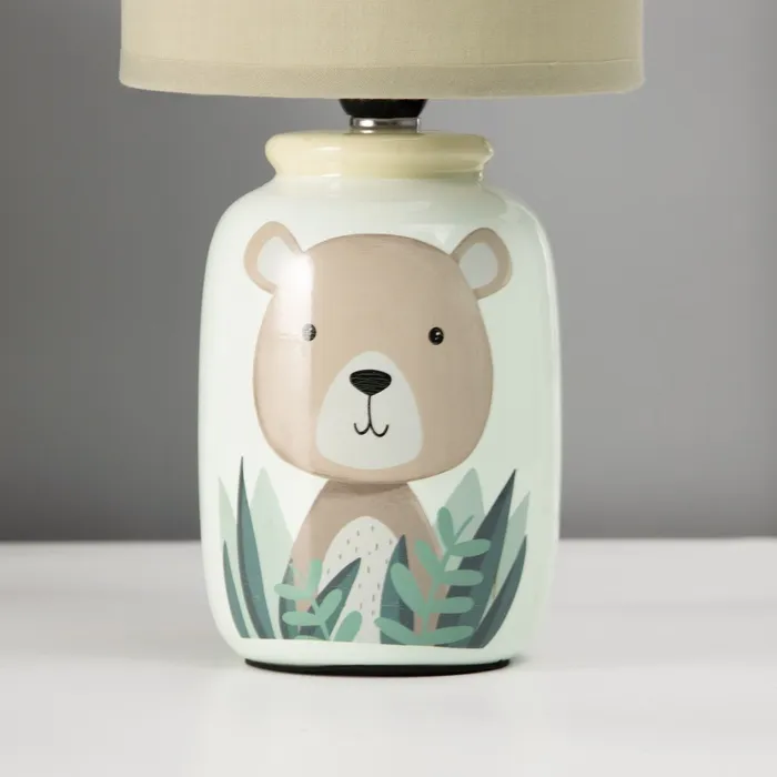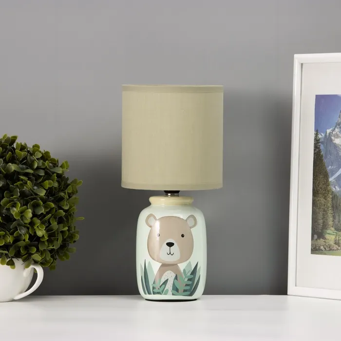 Настольная лампа с абажуром RISALUX «Мишка» детская,, Е14, 40 Вт, зелёный, 13×13×27 см