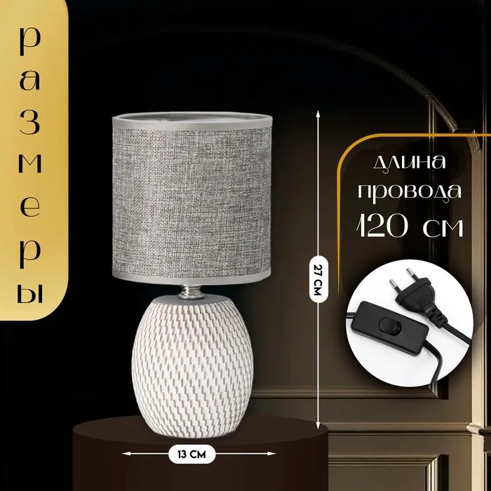 Настольная лампа с абажуром RISALUX «Наоми», Е14, 40 Вт, серо-белый, 13×13×27 см — Характеристики