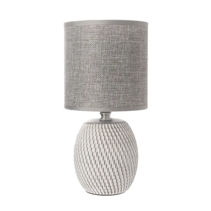 Эта настольная лампа с элегантным абажуром станет стильным дополнением любого интерьера. Сочетание серого и белого цветов придаёт ей современный вид, а овальная форма абажура позволяет мягко рассеивать свет, создавая уютную атмосферу. Компактные размеры делают её идеальным вариантом для столов, тумб и полок.