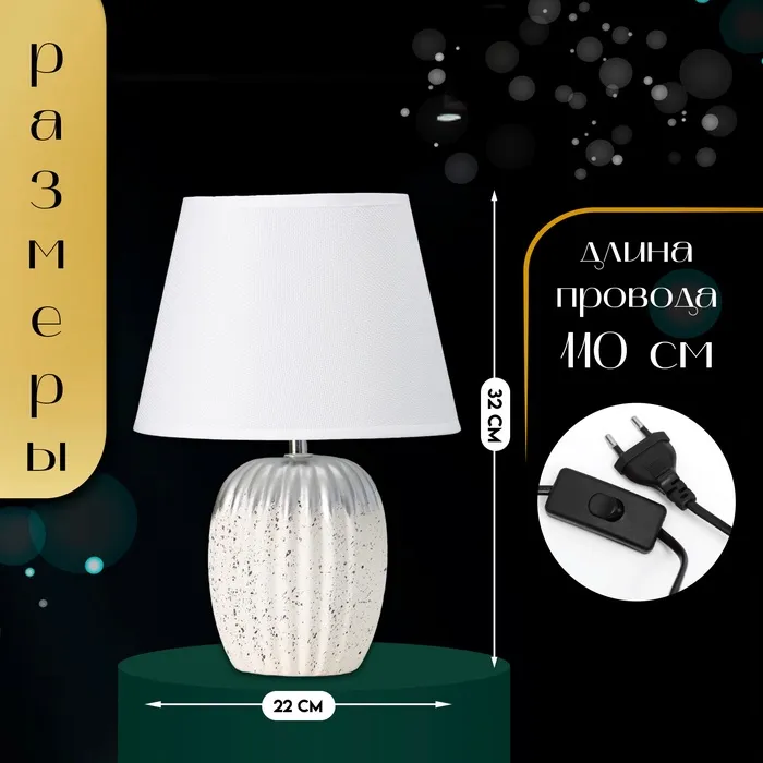 Настольная лампа с абажуром RISALUX «Нике», 1×Е14, 40 Вт, белый, 22×22×32 см — Характеристики