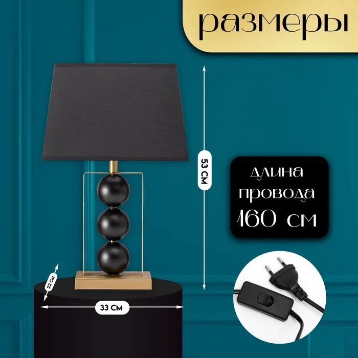 Настольная лампа с абажуром RISALUX «Оливер», Е27, 40 Вт, чёрный-латунь, фигурное основание, 33×22×53 см — Характеристики