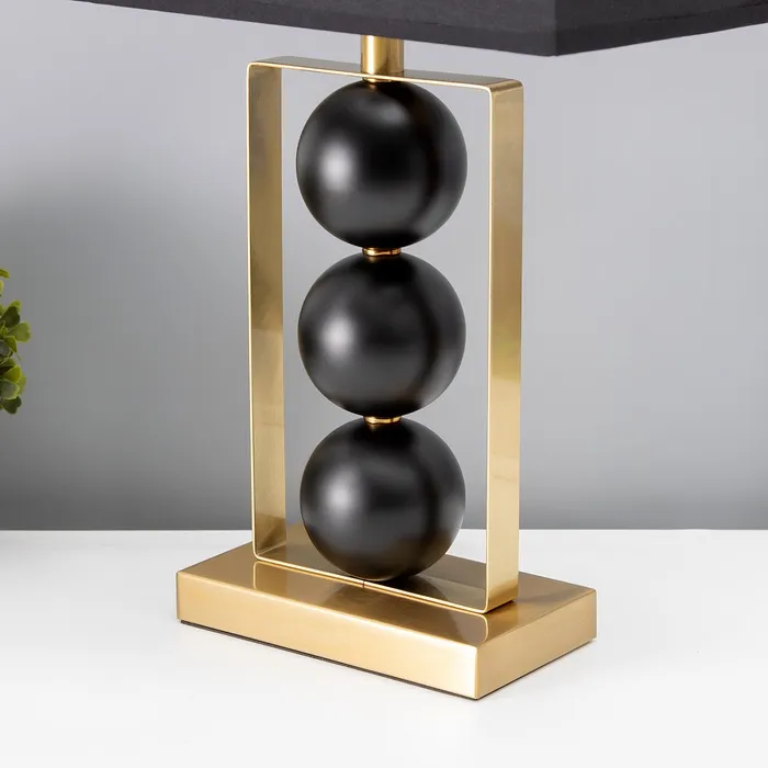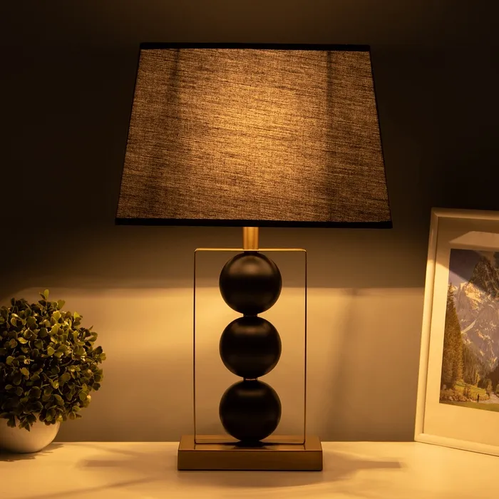 Эта настольная лампа с оригинальным фигурным основанием станет стильным акцентом в вашем интерьере. С её помощью вы создадите атмосферу уюта и элегантности в любом помещении, будь то гостиная, спальня или офис. Чёрное основание в сочетании с тёмным текстильным абажуром придаёт изделию современный вид.
