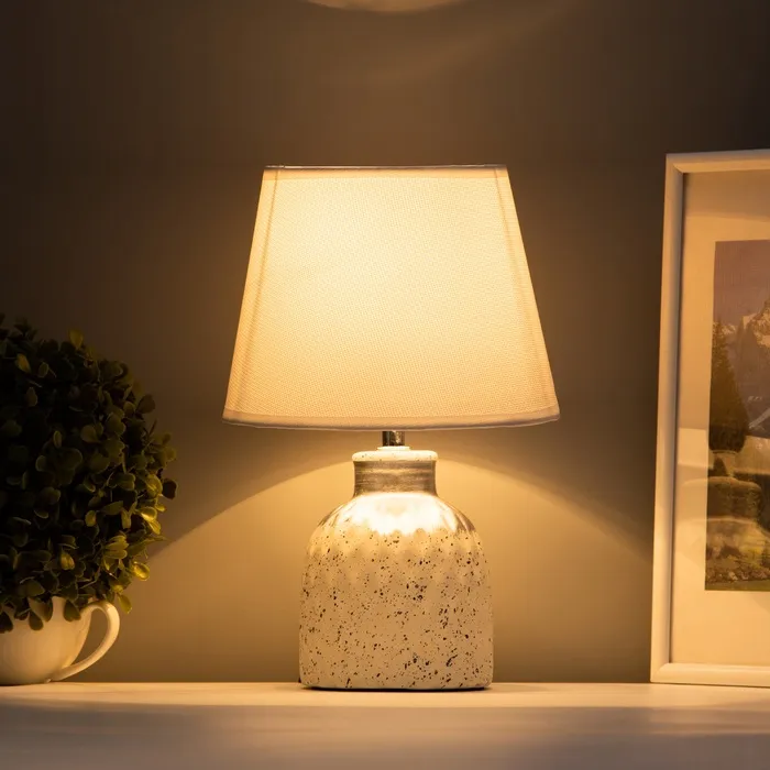 Настольная лампа с абажуром станет стильным дополнением вашего дома. Белоснежная керамическая основа и м'ягкий текстиль абажура создают утончённый образ. Эта модель прекрасно впишется в интерьеры разных стилей, обеспечивая комфортное освещение для чтения или работы.