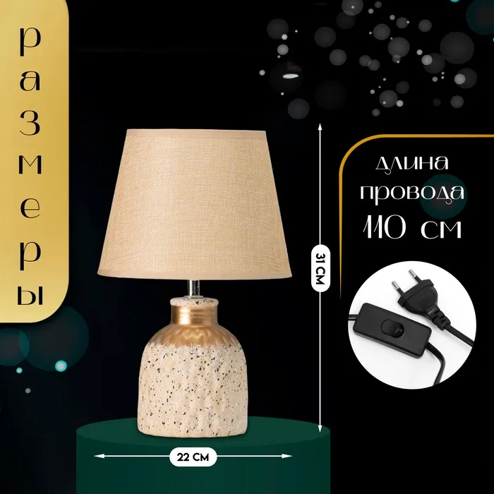 Настольная лампа с абажуром RISALUX «Овация», 1×Е14, 40 Вт, бежевый, 22×22×31 см — Характеристики