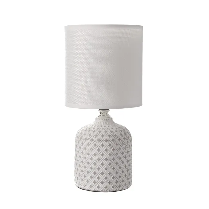 Настольная лампа с текстильным абажуром станет отличным акцентом в вашем интерьере. С высотой 27 см и размерами 13×13 см, она идеально подходит для создания уютной атмосферы в спальне, гостиной или на рабочем столе. Белое керамическое основание и светлый абажур обеспечивают мягкое и приятное освещение, создавая комфортное пространство для отдыха и работы.