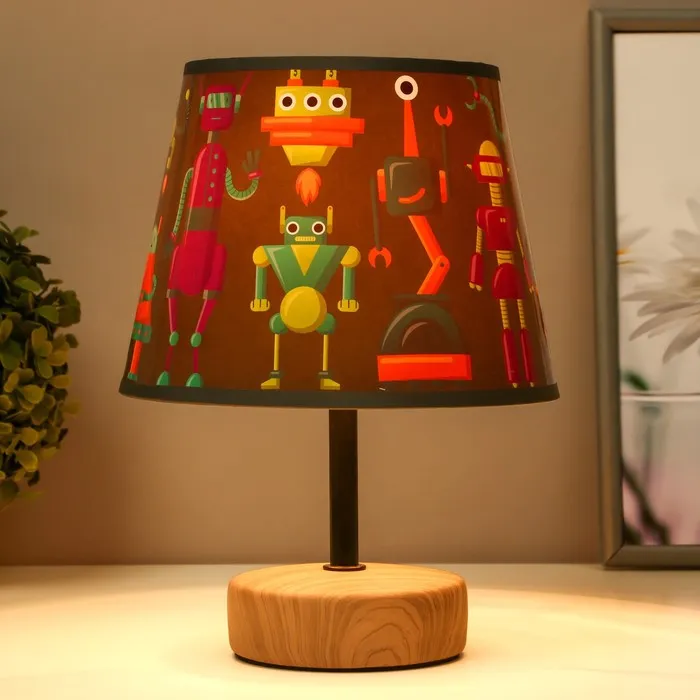 Настольная лампа с абажуром RISALUX «Роботы», Е14, 15 Вт, 20×20×27 см — Характеристики