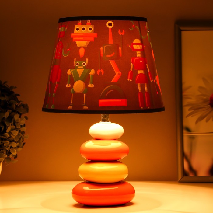 Настольная лампа с абажуром RISALUX «Роботы», Е14, 15 Вт, 20×20×30 см — Характеристики