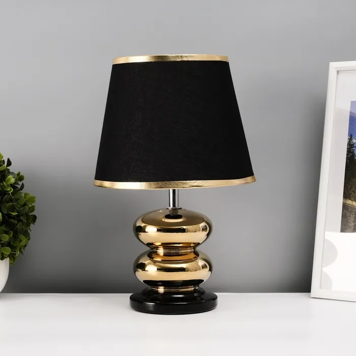 Настольная лампа с абажуром RISALUX «Роса», 1×40 Вт, Е27, чёрный/золото, 20×20×32 см — Характеристики