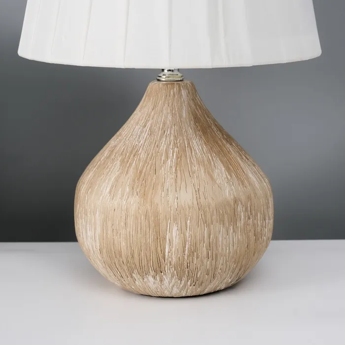 Эта настольная лампа с текстильным абажуром станет стильным акцентом в вашем интерьере. Высота 33 см и размеры 22,5×22,5 см делают её универсальным решением для создания уюта в любом помещении. Бежевое керамическое основание в сочетании с белым абажуром создает гармоничное и мягкое освещение, идеально подходящее для чтения или отдыха.