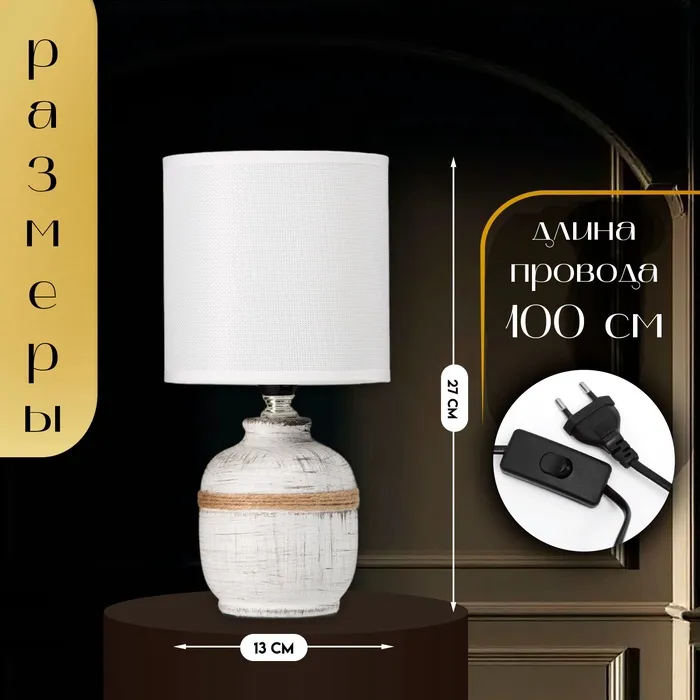 Настольная лампа с абажуром RISALUX «Шарлотта», Е14, 40 Вт, бело-чёрный, 13×13×27 см — Характеристики