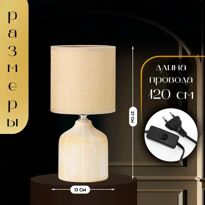 Эта стильная настольная лампа с текстильным абажуром в бежевых тонах добавит уют и элегантность в любое пространство. Компактные размеры 13×13 см и высота 27 см делают её идеальной для размещения на столах или тумбах. Лампа с цоколем E14 поддерживает накаливание мощностью до 40 Вт, создавая мягкое освещение для чтения и отдыха.