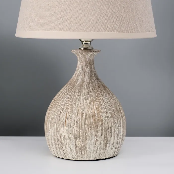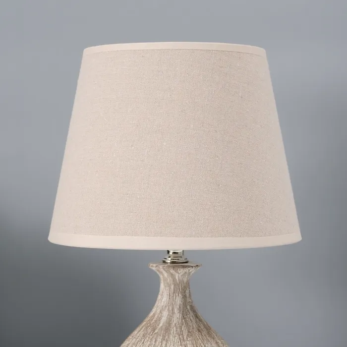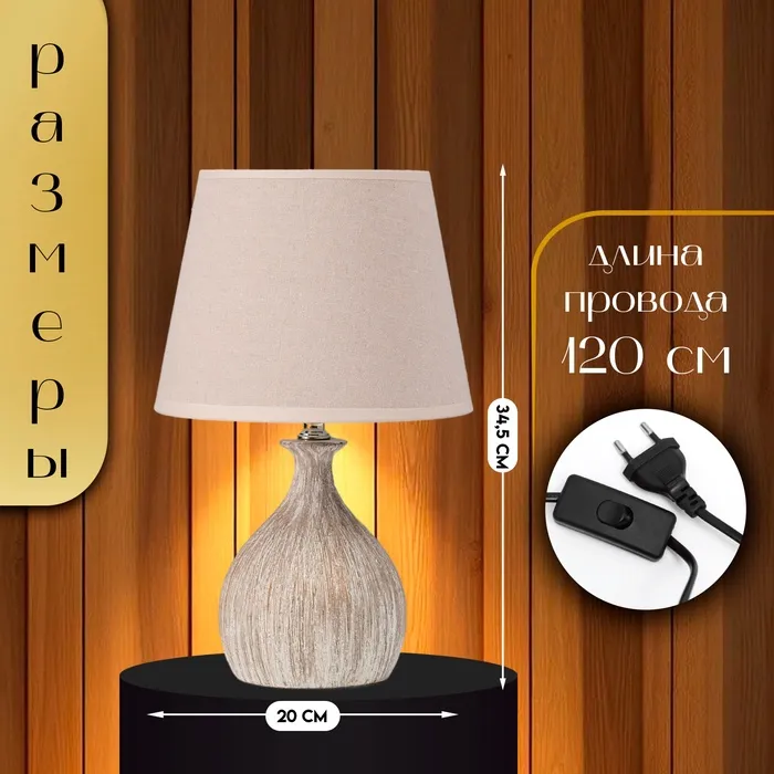 Эта настольная лампа с текстильным абажуром станет идеальным решением для добавления уюта и стиля в ваш интерьер. С высотой 34,5 см и размерами 20×20 см она прекрасно впишется в любое пространство — будь то стол в гостиной или прикроватная тумбочка. Бежевое керамическое основание и светлый абажур создают элегантный и современный облик светильника.