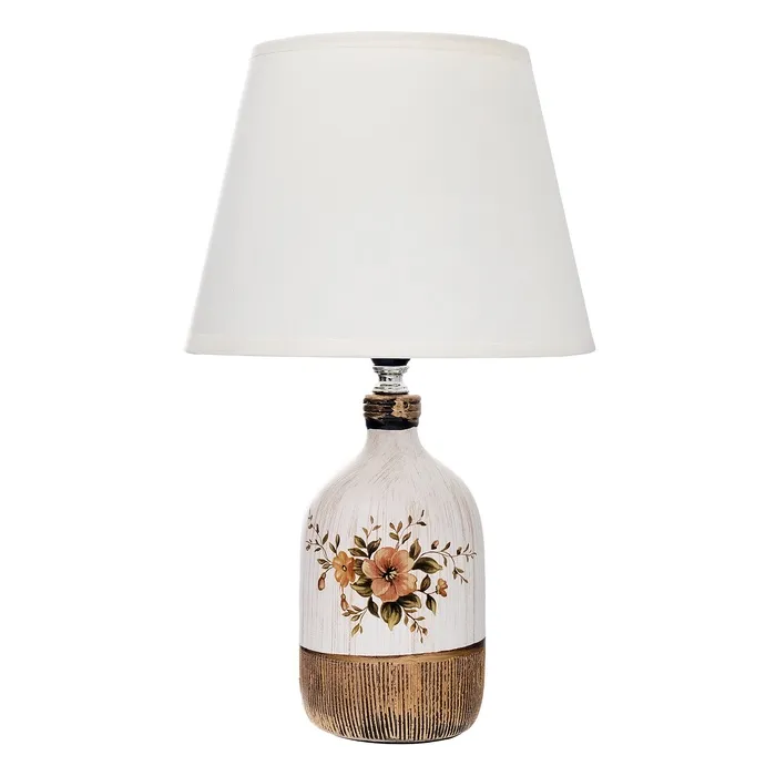 Эта настольная лампа с абажуром станет отличным дополнением вашего интерьера. С высотой 37 см и компактными размерами 22,5×22,5 см, она идеально подходит для рабочего стола, комода или полки. Бежевое керамическое основание и белый текстильный абажур создают уютную и современную атмосферу.