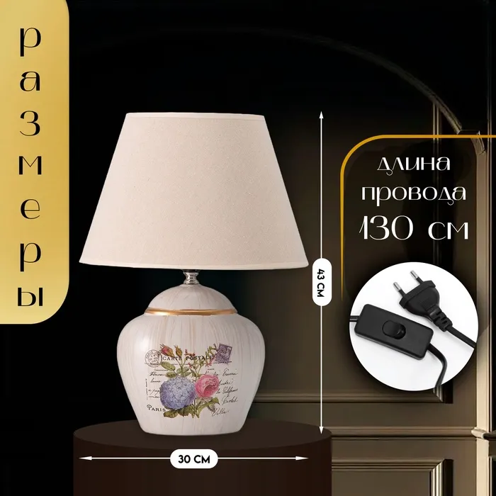 Настольная лампа с абажуром RISALUX «Сити», Е27, 40 Вт, 30×30×43 см — Характеристики