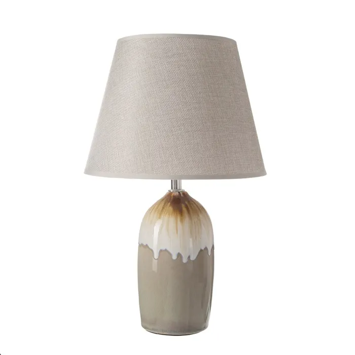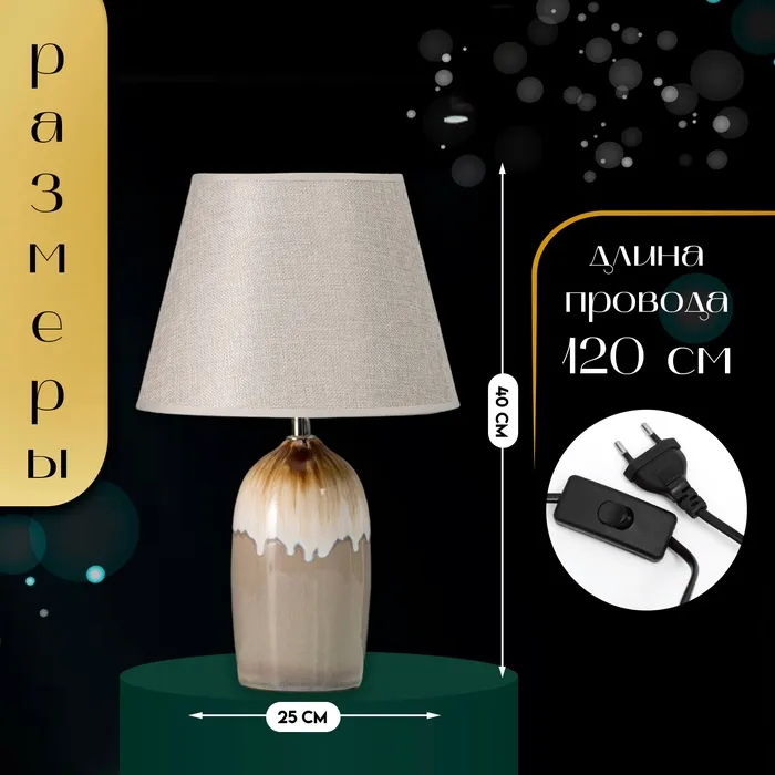 Эта настольная лампа с абажуром станет стильным акцентом в вашем интерьере. С высотой 40 см и размерами 25×25 см, она идеально подходит для создания уютной атмосферы в любом помещении. Бежевое керамическое основание в сочетании с серым текстильным абажуром добавляет элегантности и современности.