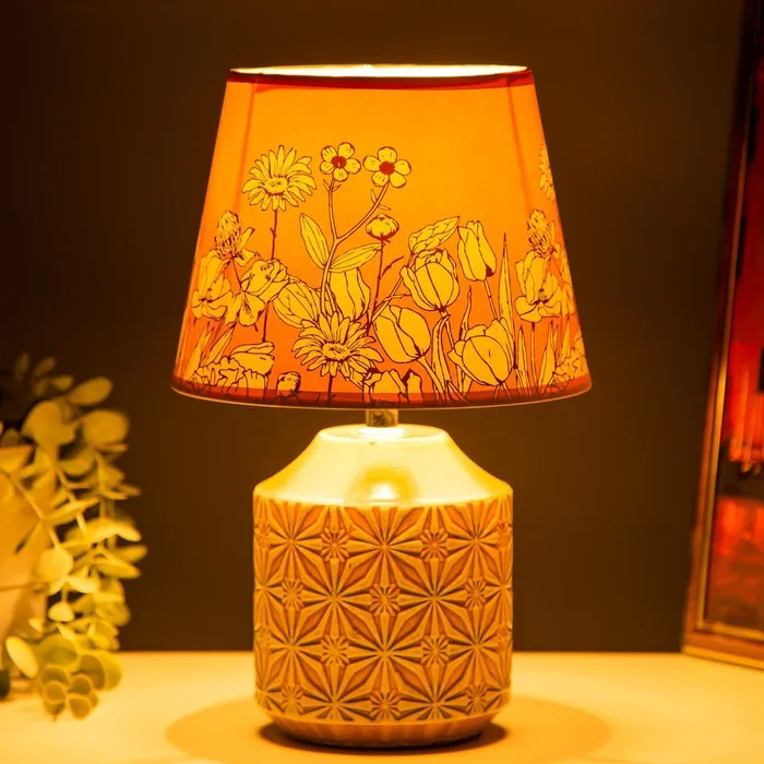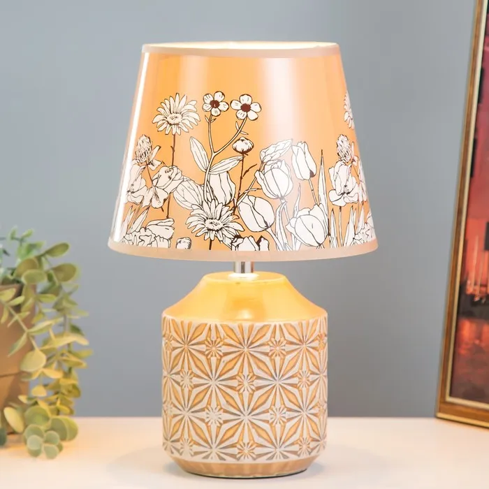 Настольная лампа с абажуром RISALUX «Цветы», Е14, 15 Вт, серый, 20×20×32 см, МИКС — Характеристики