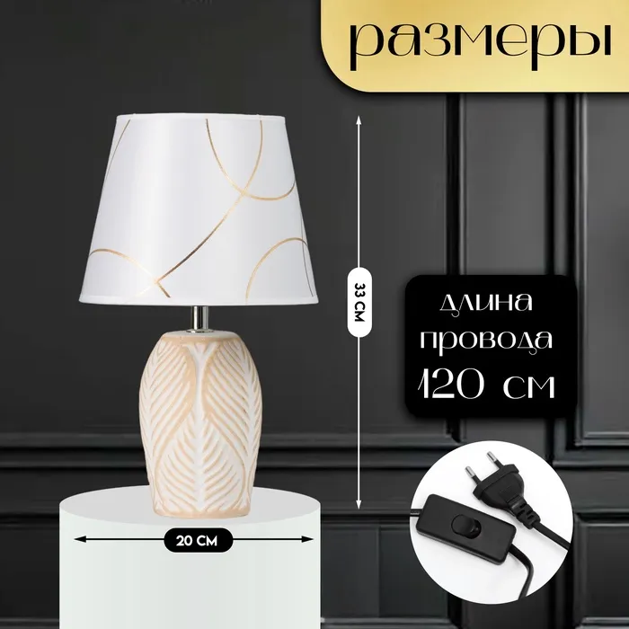 Настольная лампа с абажуром RISALUX «Турин», Е14, 40 Вт, бело-золотой, 20×20×33 см — Характеристики
