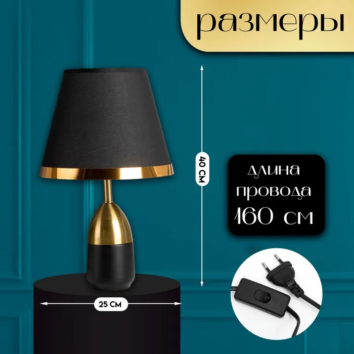 Настольная лампа с абажуром RISALUX «Жан», 1×40 Вт, Е27, чёрный/бронза, 25×25×40 см — Характеристики