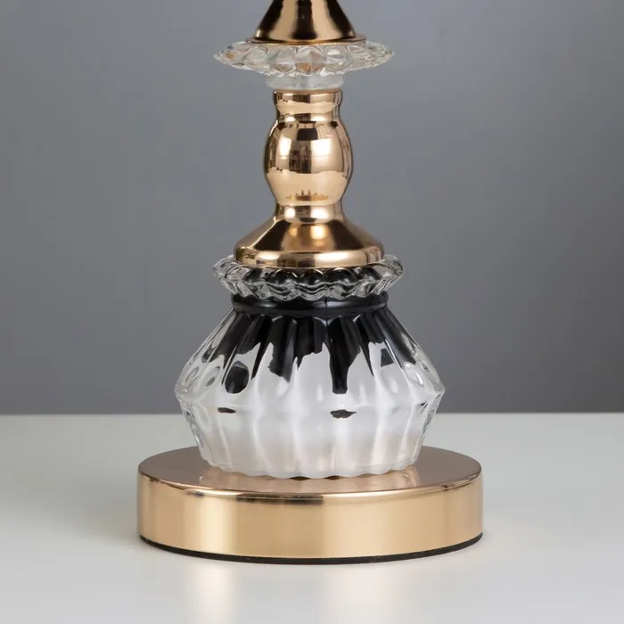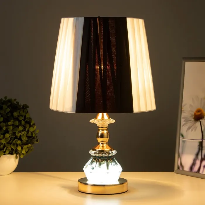 Эта настольная лампа с элегантным дизайном станет стильным акцентом в вашем интерьере. Золотое основание и текстильный абажур в черно-белых тонах создают атмосферу уюта и sophistication, подходящую для работы и отдыха.