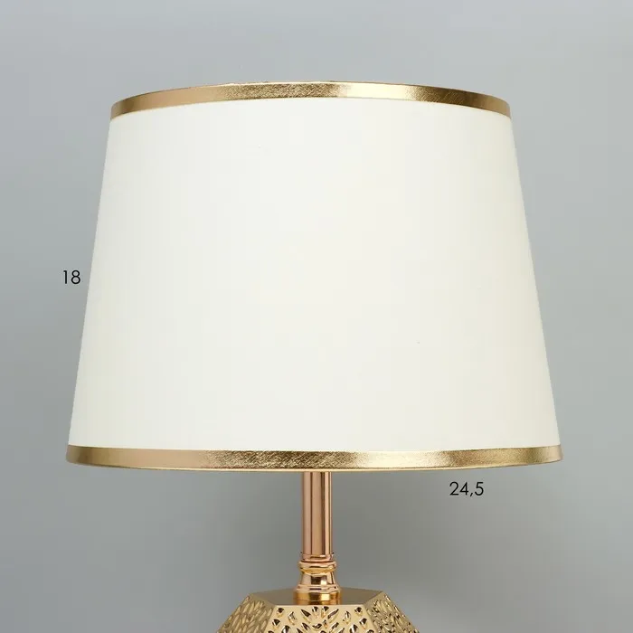 Эта настольная лампа с элегантным золотым основанием и текстильным абажуром станет прекрасным дополнением вашего интерьера. Ее стильный дизайн и мягкое освещение создадут уютную атмосферу в любом помещении.