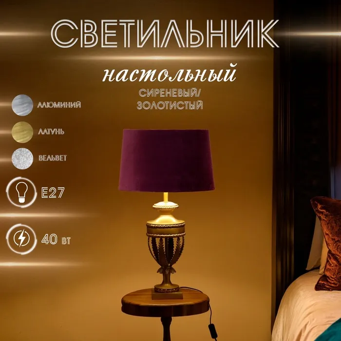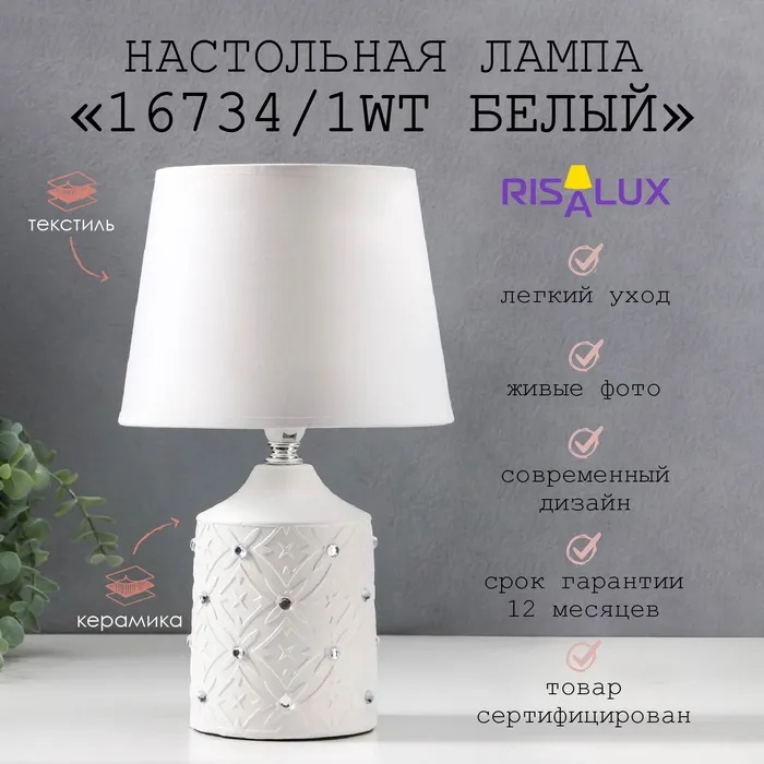 Настольная лампа с подсветкой "Каролина" Е27 40Вт золото RISALUX — Характеристики